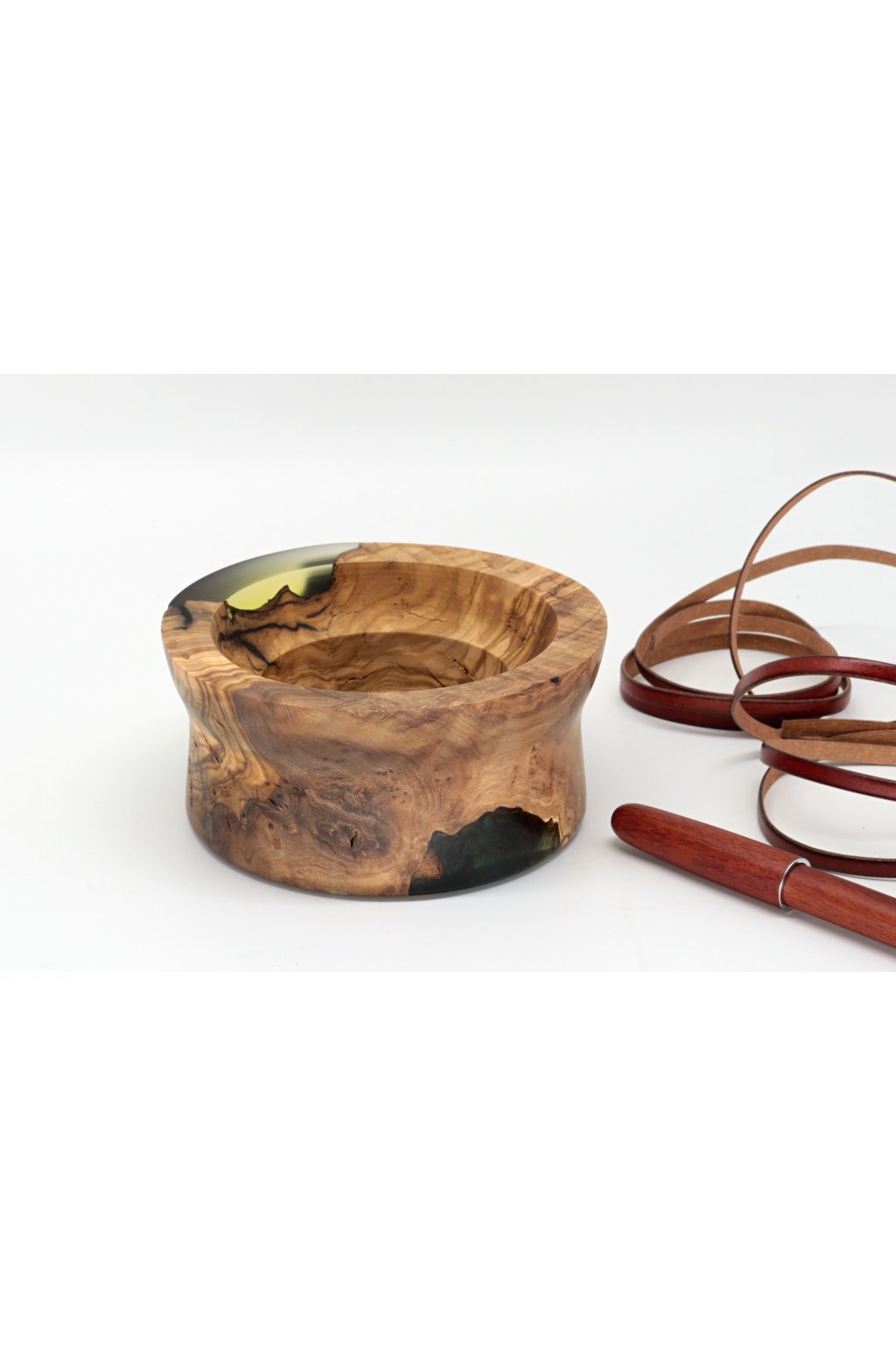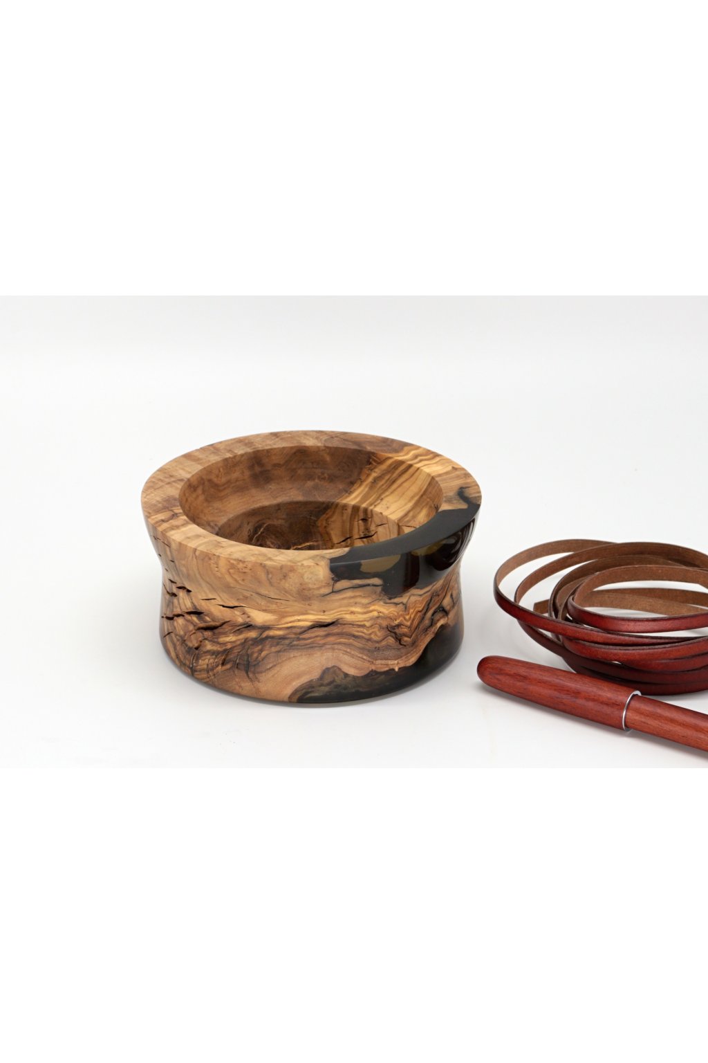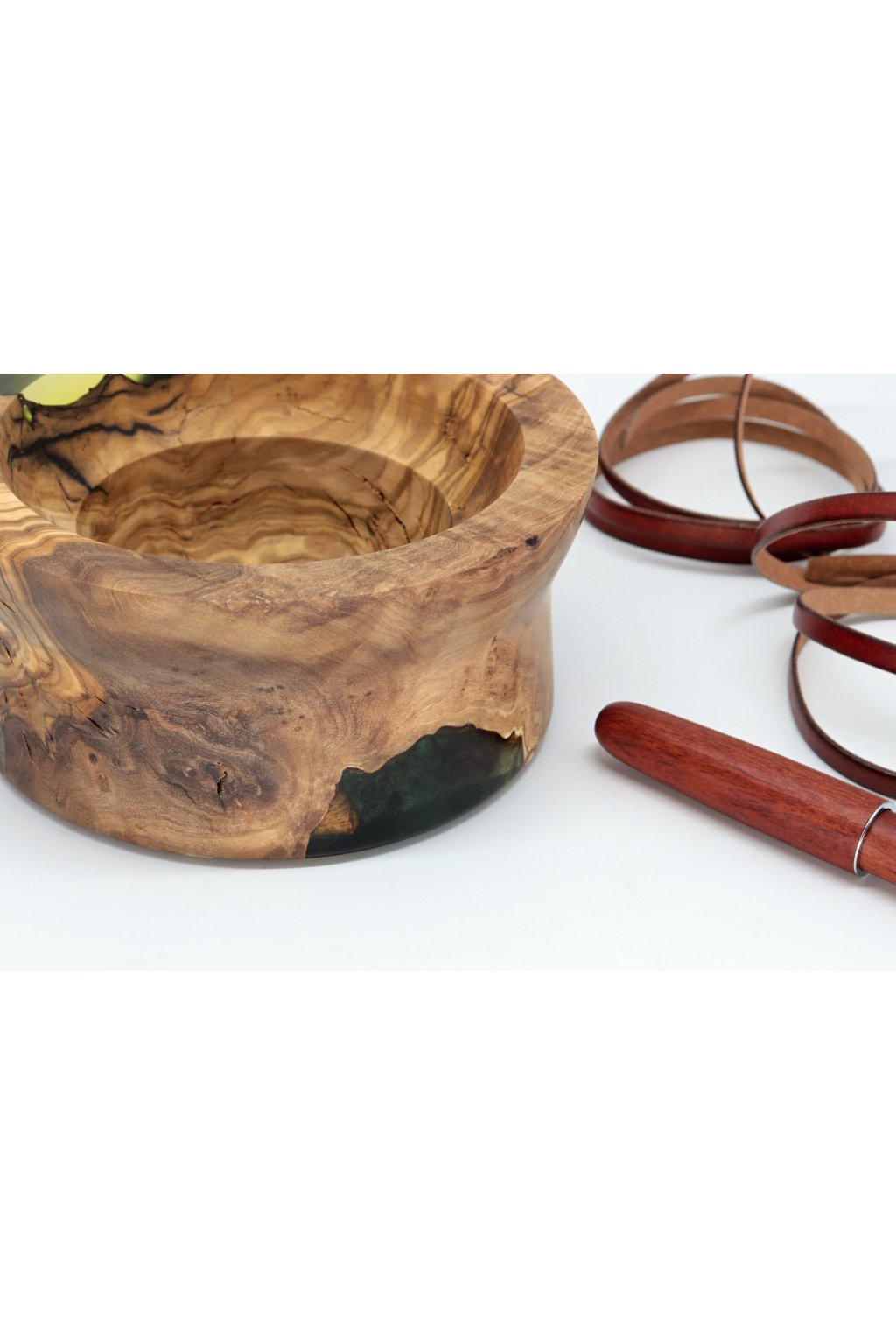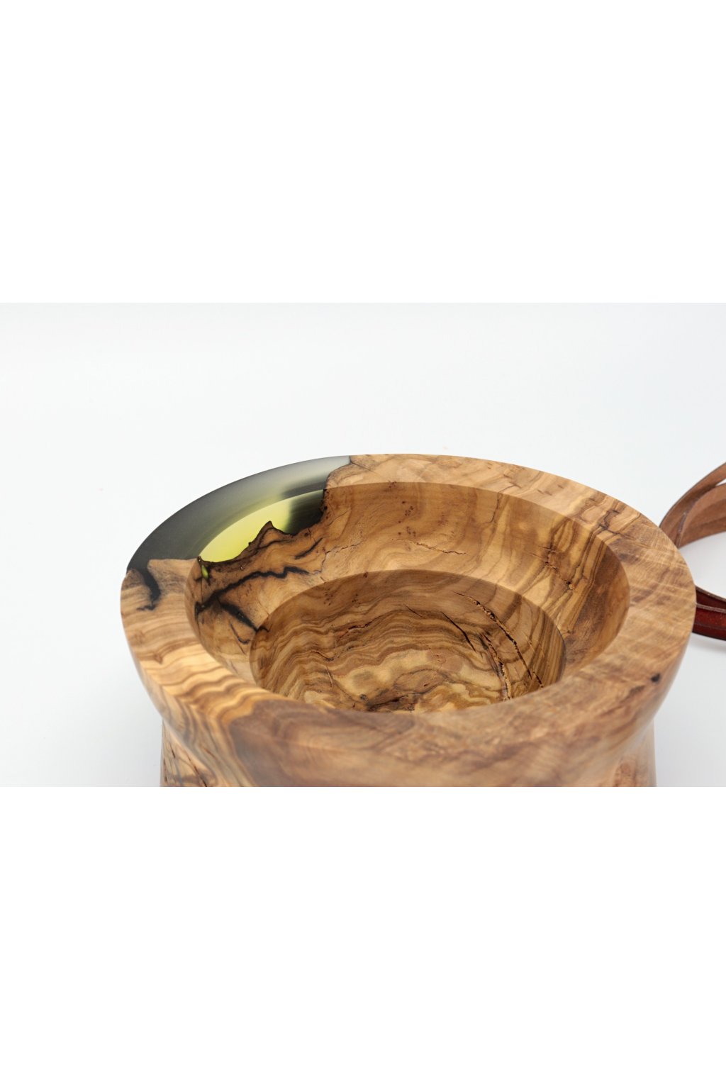 Ručně vyrobený svícen z olivového dřeva a pryskyřice.