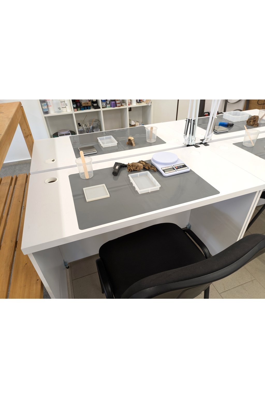 Bezpečnostní pomůcky jsou k dispozici na místě: rukavice, pracovní zástěry, ochranné brýle, ochranný štít. Pokud byste upřednostnili vlastní bezpečnostní prvky, například brýle, vezměte si je prosím s sebou. Na vyžádání můžete obdržet ochrannou masku dýchacích cest. My ji vzhledem k malému projektu a dostatečnému větrání používat nebudeme, ale k dispozici určitě bude. Na kurz se oblečte pracovně (možnost se převléknout na místě).