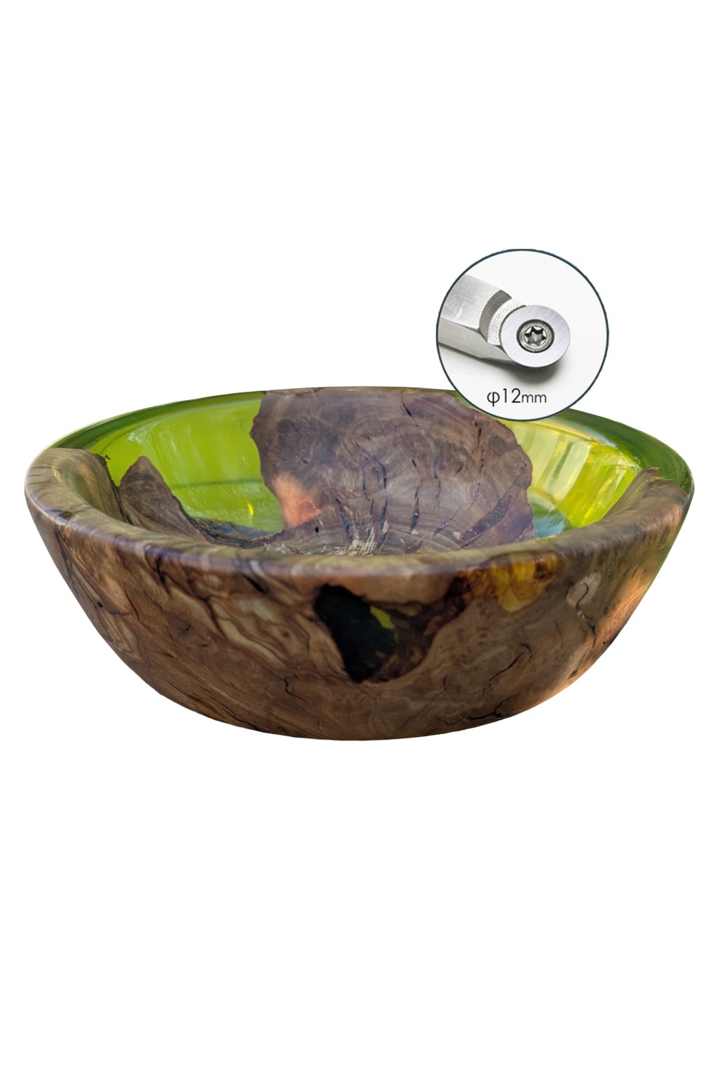 Výměnný břit pro soustružnické dláto s negativním úhlem. Při použití soustružnického dláta s negativním úhlem řezná hrana lépe odebírá třísku z pryskyřice a nedochází ke tříštění pryskyřice, což umožňuje přesnější a plynulejší řez bez vylamování pryskyřice.