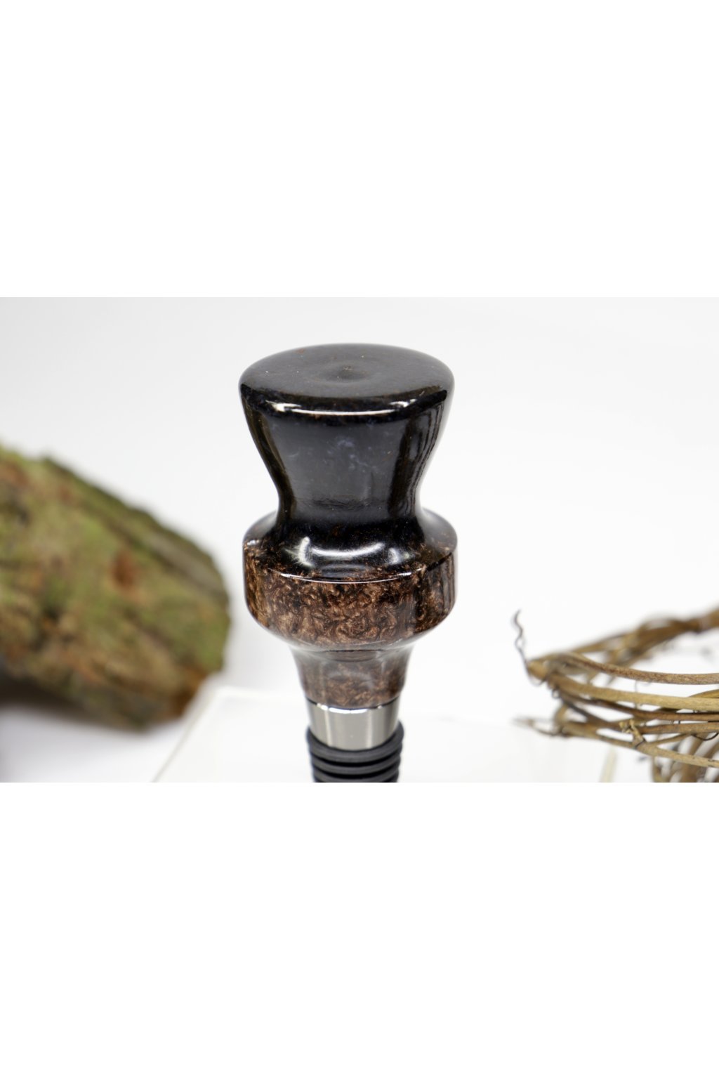 Materiál: dřevo a pryskyřice, kovová zátka